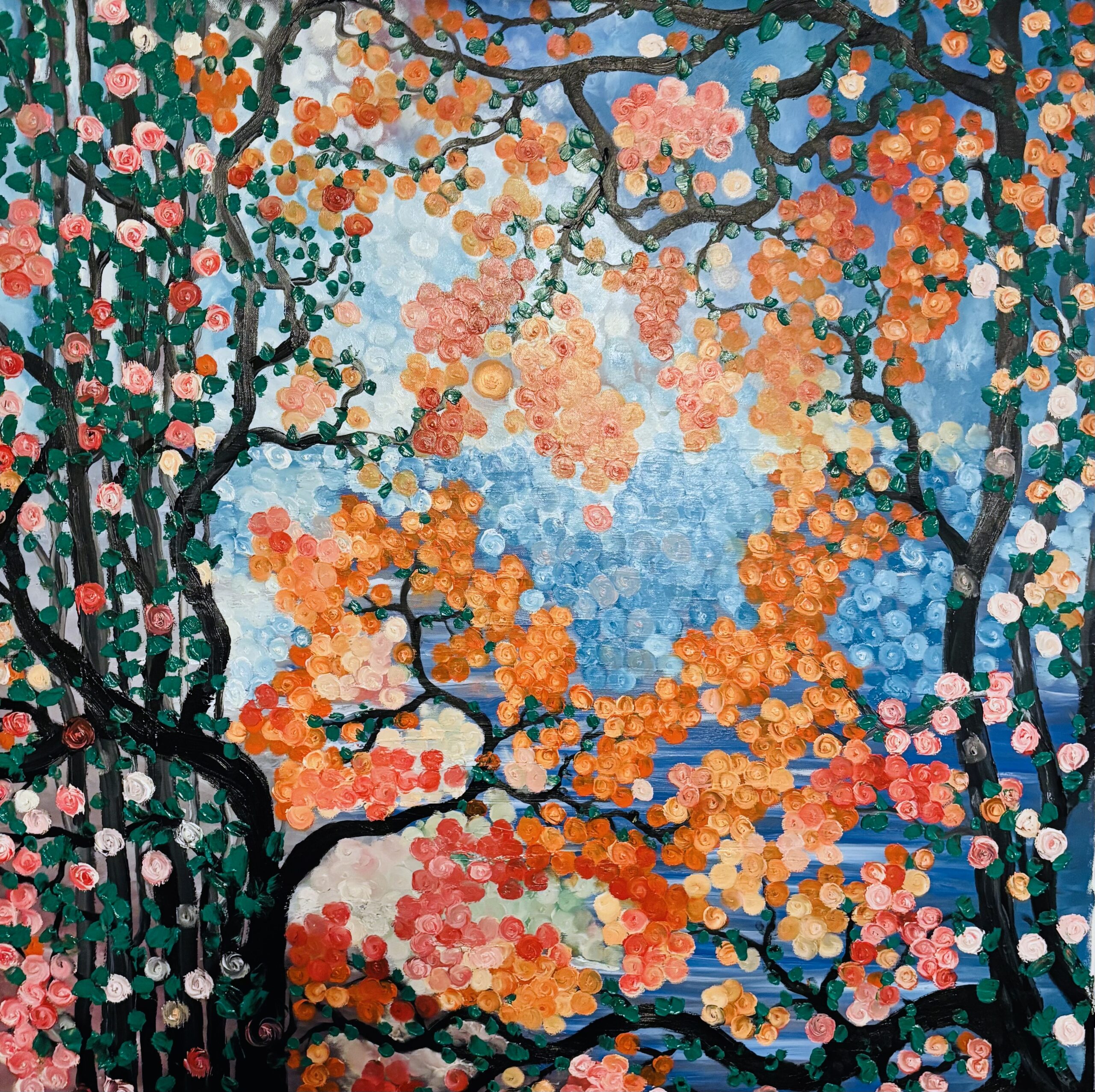 Titre : Ranting dan bunga Technique : Huile sur toile Dimensions : 100x100cm