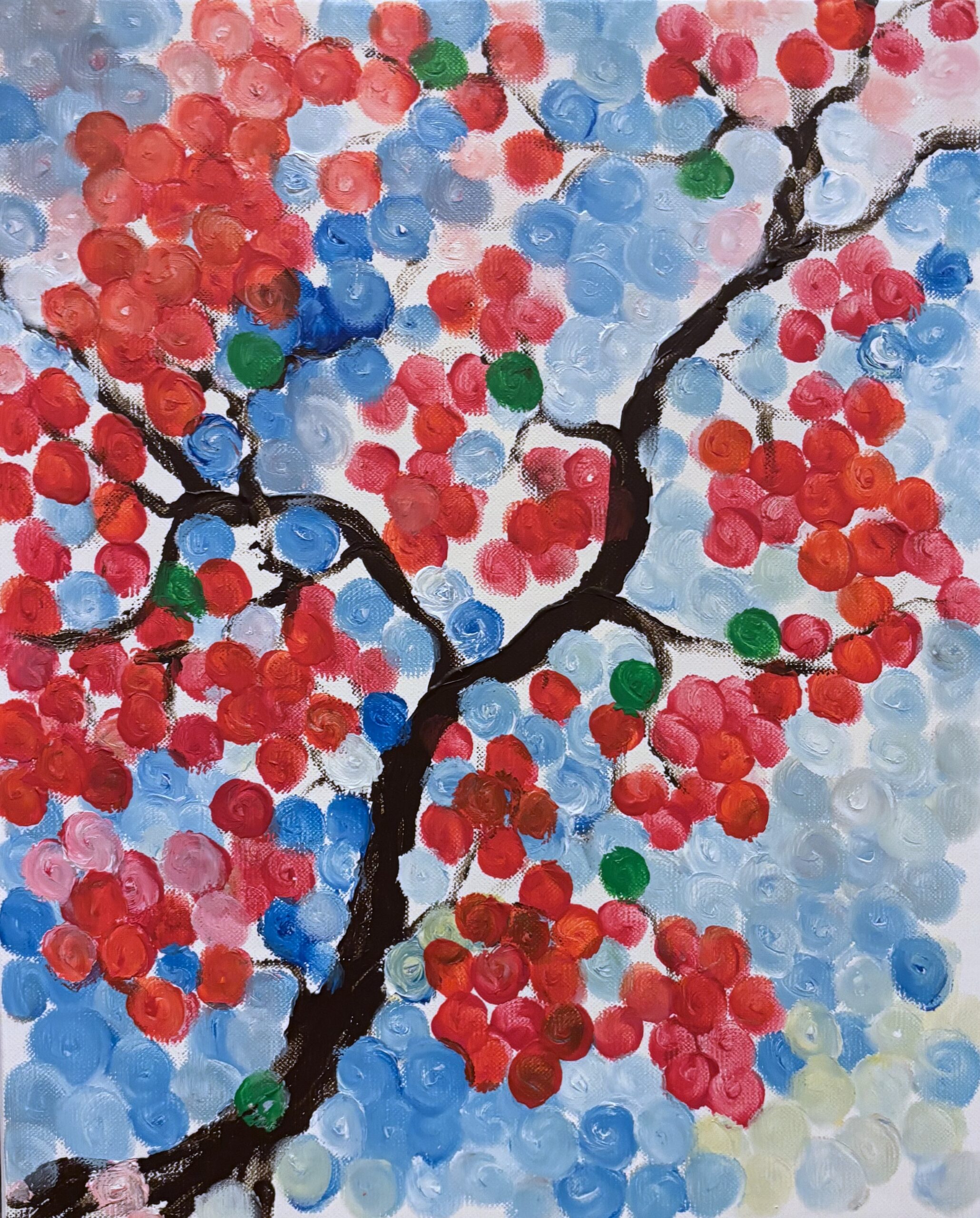 Titre : Bunga merah Technique : Acrylique sur toile Dimensions : 33x46cm