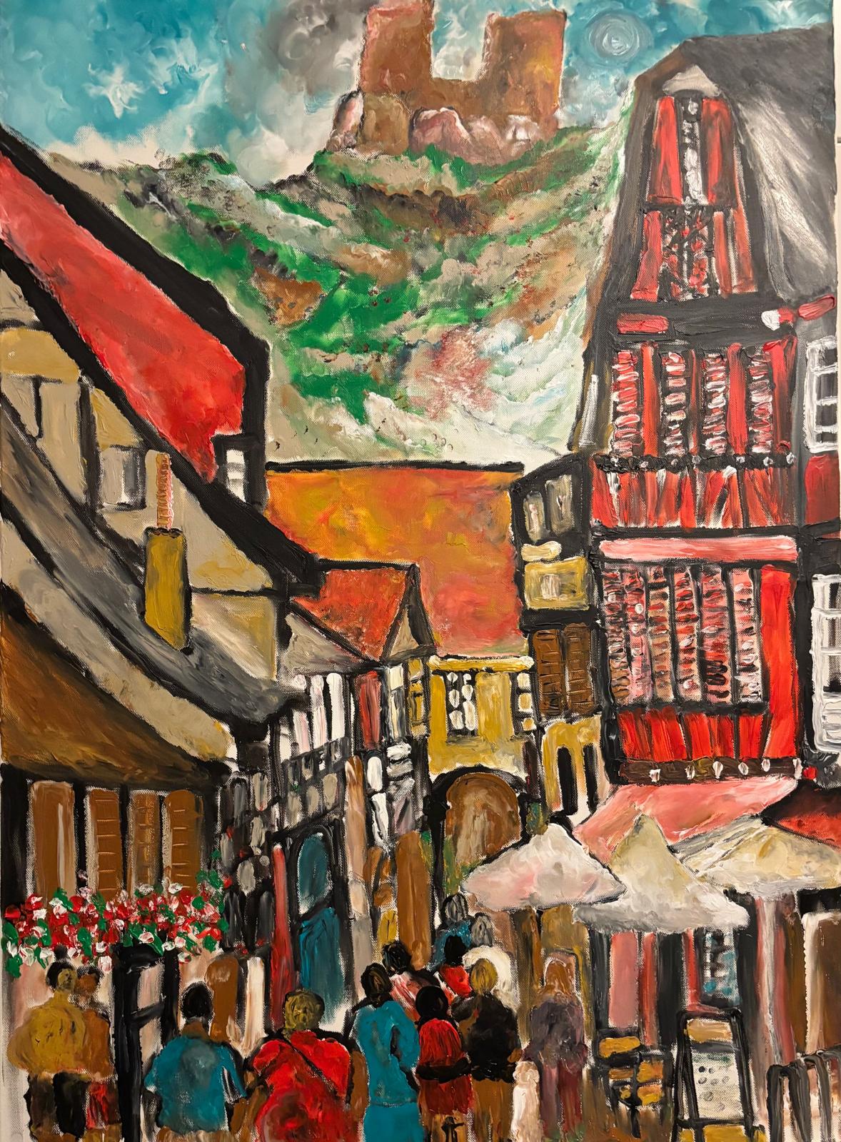 Titre : Ribeauvillé Technique : Acrylique sur toile Dimensions : 100x82cm