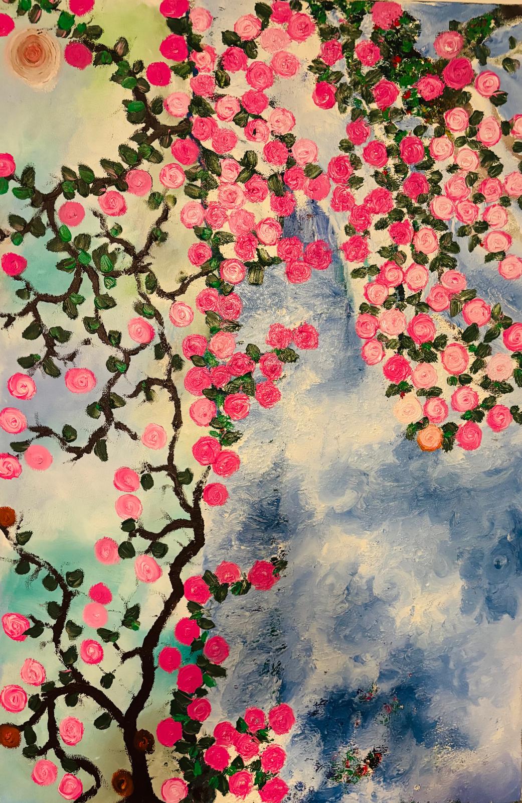 Titre : Bunga mawar Technique : Huile sur toile Dimensions : 89x59cm